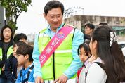 한방통신사 신유철기자 기자 | 이상일 용인특례시장은 14일 아침 처인구 고림로에 위치한 고진초등학교 정문 횡단보도에서 어린이들의 안전한 통학환경 조성을 위한 교통지도 봉사활동에 참여하고 학교 주변 통학로를 점검했다. 이상일 시장은 서경란 고진초 교장, 녹색어머니회·학부모회·학생 등 60여명과 함께 등굣길 어린이들이 안전하게 길을 건널 수 있도록 돕고 운전자들에게 ‘어린이보호구역 내 서행’을 당부하는 교통안전 캠페인을 펼쳤다. 이 시장은 통학로 현장을 둘러보며 ▲고림고 유리방음벽 모서리 보호대 설치 ▲고림고~힐스테이트용인고진역 구간 횡단보도 너비 확대 ▲해당 구간 도로의 물고임 등 도로시설물 일제정비 ▲통학로 낙엽제거(보행자 미끄러짐 방지) 등의 추가 건의사항을 꼼꼼히 챙겼다. 이상일 시장은 녹색어머니회와 학부모회 회원들에게 “아이들의 등굣길을 지켜주셔서 감사 드린다”며 “학생들이 마음 놓고 통학할 수 있는 안전한 도시 환경을 만드는 것이 무엇보다 중요한 만큼 시에서도 현장을 잘 살펴 필요한 조치를 신속히 진행하겠다”고 말했다. 이 시장은 10월과 11월에도 용인신촌초, 백현초, 구갈초, 신월초, 함