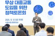 한방통신사 신유철기자 기자 | 수원특례시는 12일 시청 중회의실에서 ‘수원시 무상대중교통 도입 정책토론회’를 열고, ‘수원형 무상대중교통’ 도입 정책 방향을 공유했다. 이날 정책토론회는 주제 발표와 종합토론으로 진행됐다. 김채만 경기연구원 선임연구위원이 ‘미래 대중교통 정책방향-쿠리치바 대중교통 사례’, 김숙희 수원시정연구원 선임연구위원이 ‘수원시 무상대중교통 도입 방향’을 주제로 발표했다. 수원시는 사회초년생 청년과 어르신의 교통비 부담을 덜어주기 위해 내년 1월 1일부터 무상대중교통 지원사업을 시작한다. 지원 대상은 19~23세 청년, 70세 이상 어르신이다(신청일 기준). 19~23세 청년이 K-패스 교통카드로 대중교통을 이용하면 한 달에 최대 2만 3100원(연 27만 7200원)을 환급한다. 어르신은 농협에서 우대 교통카드(G-PASS)를 발급받아 사용하면 실제 사용 금액에 대해 분기별 최대 6만 9300원(연 27만 7200원 한도)를 지원한다. 종합토론에는 아주대학교 오영태 교수, 한국교통연구원 박준식 본부장, 경기대학교 김정화 교수, 경기도 광역교통정책과 윤태완 과장이 참