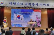 한방통신사 신유철기자 기자 | 법무부 양주출입국·외국인사무소는 2025. 9. 25. 관내‘경기섬유지원센터 컨벤션홀’에서 양주시 등 경기 북부지역에 거주하고 있는 귀화자 및 국적회복자 57명을 대상으로 국적증서 수여식을 개최했다. 2018. 12. 20. 국적법 개정에 따라 법무부장관 앞에서 하던 국민선서와 국적증서 수여는 귀화자 및 국적회복자 거주 지역별 출입국·외국인관서에서 시행하고 있다 이번 국적증서 수여식은 대한민국 국민이 되어 첫 번째로 맞이하게 될 ‘추석’ 민속명절의 의미를 되새기고, 한국 사회에서 소속감과 자긍심을 가지고 살아갈 수 있도록 격려하고 축하하는 뜻깊은 장이 됐다. 이날 행사는 △대통령 축하영상 시청, △귀화자 등 국민선서 및 국적증서 수여, △기관장 축사, △ 국적취득 대표자의 소감 발표 순으로 진행됐다 김용규 소장은 축사를 통해 쉽지 않은 과정을 거쳐 대한민국 국민으로서 사회 구성원이 된 국적 취득자에게 권리뿐만 아니라 책임과 의무의 막중함을 강조하면서 다양한 문화적 배경과 경험을 바탕으로 서로 간에 이해와 화합을 증진하는데 노력해 주기를 당부했다 또한, 국적