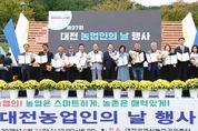 한방통신사 신태공 기자 | 대전시는 9월 24일 대전광역시농업기술센터에서 ‘제37회 대전농업인의 날’ 행사를 개최했다. 올해 행사는 “대전농업인! 농업은 스마트하게, 농촌은 매력있게!”라는 주제로 열렸으며, 농업인과 시민, 관계자 등 1,500여 명이 참석해 성황을 이뤘다. 이번 행사는 (사)한국농촌지도자대전광역시연합회, (사)한국후계농업경영인대전광역시연합회, (사)한국생활개선대전광역시연합회, 대전광역시4-H연합회가 공동 주최했다. 현장에서는 대전의 우수농산물과 스마트팜 농기자재 전시가 마련돼 농업의 현재와 미래를 한눈에 볼 수 있었으며, 명랑운동회, 한마음콘서트, 축하공연 등 다채로운 프로그램이 진행돼 남녀노소 누구나 즐길 수 있는 도농 화합의 장이 됐다. 특히 이날 행사에서는 (사)한국농촌지도자대전광역시연합회 김민순 회장이 대전 농업·농촌 발전에 아낌없는 지원을 해온 이장우 대전광역시장에게 농업인을 대표해 감사패를 전달했다. 이장우 대전시장은 “이번 행사를 통해 농업과 농촌의 소중함을 시민과 함께 나누고, 스마트농업을 통한 미래농업의 가능성을 알리는 계기가 되길 바란다”라며 “앞으로도 농업인의