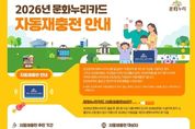 한방통신사 신다은기자 기자 | 무안군은 문화누리카드(통합문화이용권) 이용자 가운데 수급 자격을 유지한 대상자에게 별도의 신청 절차 없이 2026년도 지원금을 자동으로 충전해 주는 ‘자동 재충전 제도’를 시행한다고 밝혔다. 문화누리카드는 만 6세 이상 기초생활수급자와 차상위계층을 대상으로 문화예술·여행·체육 분야 이용을 지원하는 카드로, 무안군은 2026년 문화누리카드 지원금을 전년 대비 1만 원 인상해 1인당 15만 원을 지원할 계획이다. 다만, 만 13~18세 청소년기 대상자와 만 60~64세 생애전환기 대상자의 경우 추가 지원이 적용돼 1인당 16만 원을 받을 수 있다. 문화누리카드 이용 기간은 2026년 2월 2일부터 12월 31일까지다. 정대술 문화예술과장은 “문화생활을 누리기 어려운 군민들이 문화누리카드를 통해 보다 다양한 문화 혜택을 누릴 수 있도록 발급과 이용 안내에 최선을 다하겠다”고 말했다. [뉴스출처 : 전라남도 무안군]