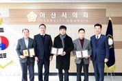한방통신사 신태공 기자 | 아산시의회는 26일 오전 11시, 의장실에서 ‘제6기 의정자문위원회 간담회’를 열고 임기 동안 헌신한 위원들에게 감사패를 수여하며 그간의 활동을 마무리하는 시간을 가졌다. 이날 간담회에는 홍성표 의장과 맹의석 부의장을 비롯해 임기 만료를 앞둔 제6기 의정자문위원회의 정재호 부위원장, 임헌창 위원, 박종식 위원 등이 참석했다. 이번 간담회는 제6기 의정자문위원의 공식 임기 종료를 앞두고, 그동안 아산시의회의 전문성 강화와 지역 현안 해결을 위해 아낌없는 자문과 정책 제안을 이어온 위원들의 노고에 감사를 표하기 위해 마련했다. 수여된 감사패에는 의정 현안에 대한 깊이 있는 분석과 정책 개선안 제시를 통해 시의회의 위상을 높이고, 지역사회 발전에 기여한 위원들의 공로가 담겼다. 간담회에 참석한 위원들은 “시민의 목소리를 의정에 반영하기 위해 함께 고민했던 지난 시간이 매우 뜻깊었다”며 “비록 임기는 만료되지만, 앞으로도 아산시의 발전과 시의회의 행보를 늘 응원하며 시민의 한 사람으로서 힘을 보태겠다”고 소회를 밝혔다. 홍성표 의장은 “각계각층의 전문가로서 위원님들이