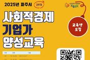 한방통신사 신유철기자 기자 | 파주시는 사회적가치 실현을 위한 사회적경제 생태계 확산을 목표로 ‘2025년 하반기 사회적경제 기업가 양성 교육’을 운영한다. 교육은 10월 14일부터 11월 27일까지 매주 화·목 19~21시에 진행되며, 금촌어울림센터 1층에서 총 14강으로 진행된다. 대상은 관내 사회적경제 창업 희망자 및 관심 시민이며, 정원은 선착순 30명이다. 교육과정은 사회적경제의 철학과 기업가정신을 시작으로, ▲협동조합·마을기업·사회적기업의 제도 이해 ▲소셜 비전 수립 ▲지역자원 발굴·활용 ▲홍보·마케팅 ▲조직 운영 ▲사회적가치 체계 구축까지 창업 전 과정을 단계적으로 다룬다. 특히 생성형 인공지능(AI)을 활용한 사업계획서 작성 실습으로 변화하는 환경에 바로 적용할 수 있는 역량을 기를 수 있도록 구성했다. 특화 프로그램으로 업종별 자문상담을 마련해 유통·제조, 돌봄·사회서비스, 교육·관광·체험, 환경·자원순환 분야의 현직 사회적경제 기업 대표들이 사례 중심의 밀착 상담을 제공한다. 또한 창업 단계부터 사회적기업 인증까지의 과정을 성공적으로 거친 선배 기업가와의 만남도 진행되어 실제 경험