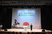 한방통신사 신유철기자 기자 | 동두천시는 2026년 병오년(丙午年) 새해를 맞아 1월 2일 오후 2시 시민회관 공연장에서 시민과 함께하는 ‘2026년 시무식’을 개최했다. 이번 시무식은 시립이담농악단의 병오년 ‘붉은 말의 해’를 알리는 웅장하고 경쾌한 북소리로 막을 열었다. 이어 전통 농악 장단을 현대적으로 재해석한 타악 퍼포먼스와 시립합창단의 ‘새로운 길’, ‘개선행진곡’, ‘위풍당당 행진곡’ 공연이 이어지며 희망찬 새해의 시작을 알렸다. 박형덕 동두천시장은 '2026년 시민과 함께하는 시무식'에서 ‘동두천을 새롭게! 시민을 힘나게! 시민이 행복한 도시! 매일 활력 넘치는 동두천을 위하여!’라는 구호와 함께 힘찬 타고식을 진행하며 시민의 행복과 도시의 활력을 강조했다. 또한 박 시장은 “민선 8기 4년 차를 맞는 2026년 시정의 핵심 키워드를 ‘일로매진(一路邁進)’으로 삼겠다”라며 “미군 공여지 피해 규모 및 발전계획 연구용역을 통해 정부의 확실한 보상과 지원을 이끌어내고, 평화로 가로환경 정비사업으로 보행 공간을 확장하며, 동두천중앙역세권 일대 도시재생사업을 통해 시민을 위한 문화공간과 기반 시설을 확충하