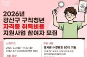 한방통신사 김성의 기자 | 광주 광산구가 취업을 준비하는 청년의 자격증 취득비용 지원을 올해 최대 20만 원으로 확대한다. 광산구는 2월부터 고물가와 취업난이란 이중고 상황에서 청년의 취업 역량 강화와 구직 활동에 드는 경제적 부담 완화를 돕는 ‘2026년 구직 청년 자격증 취득비용 지원사업’을 추진한다고 2일 밝혔다. 광산구에 주소를 두고 거주하는 19세~39세(1987년~2007년생) 미취업 청년을 대상으로, 자격증 취득에 필요한 시험 응시료와 수강료를 지원하는 사업이다. 광산구는 고물가 시대 청년의 취업 준비에 실질적인 보탬을 주기 위해 지원 한도를 지난해 10만 원에서 올해 최대 20만 원으로 2배 상향했다. △국가기술자격증 540종 △국가전문자격증 △어학 시험(토익, 오픽 등 16종) △한국사능력검정시험 △운전면허(1종 대형) 등 청년 수요가 높은 자격증 취득을 폭넓게 지원한다. 단, 운전면허의 경우 취업 활용도가 높은 ‘1종 대형’ 면허 취득 시에만 대상이 된다. 참여 신청 기간은 2월부터 11월까지다. 광산구는 예산 소진 시까지 100명 내외를 선착