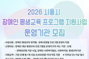 한방통신사 신유철기자 기자 | 시흥시는 장애인의 학습권을 보장하고 사회참여 기회를 확대하기 위해 ‘2026년 장애인 평생교육 프로그램 지원사업’을 추진하는 가운데 운영기관을 모집한다. 이번 공모사업은 경기도와 시흥시가 공동으로 예산을 지원해 장애인의 역량 개발을 돕고, 지역사회와의 소통 기반을 마련하고자 추진된다. 공모 분야는 장애인 평생교육 7대 분류인 ▲기초문해 ▲학력 보완 ▲직업 능력 향상 ▲문화예술 ▲인문 교양 ▲시민참여 ▲성인 진로 등이며, 장애인 대상 영역별ㆍ유형별 프로그램 운영비를 지원한다. 지원 대상은 시흥시 관내 비영리민간단체로 등록된 장애인 단체ㆍ시설, 장애인 사회복지법인, 사회복지관 및 평생교육기관이다. 선정된 기관에는 1개 사업당 최대 400만 원 이내의 보조금이 지원되며, 보조금 신청액 대비 5% 이상의 자부담 편성이 필수다. 신청 기간은 2월 19일부터 3월 5일까지이며, 신청은 지방보조금관리시스템인 ‘보탬e’를 통해서 온라인 신청으로 진행된다. 사업은 4월부터 11월까지 진행된다. 김상동 평생교육원장은 “이번 공모를 통해 장애 유형과 특성을 고려한 수요자 중심