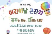한방통신사 신유철기자 기자 | 가평군은 오는 5월 1일 오전 10시 가평종합운동장에서 ‘제15회 가평군 어린이날 기념행사’를 개최한다. 가평군어린이집연합회와 가평군육아종합지원센터가 공동 주관하는 이번 축제는 기념행사와 공연, 놀이, 체험 부스 등 다채로운 프로그램으로 꾸며진다. 행사는 조종청소년오케스트라의 식전 공연으로 막을 올린다. 이어지는 본행사에서는 어린이 대표의 어린이 헌장 선언문 낭독과 군수 및 군의장의 기념사·축사, 공동 주관 기관장들의 개회 선언이 진행된다. 어린이날 유공자 및 모범어린이 6명에 대한 표창은 행사 이후인 5월 4일 가평군 월례조회 시 별도로 수여할 계획이다. 현장에는 가평경찰서, 교육지원청, 보건소 등 17개 기관과 단체가 참여해 총 26개의 체험 및 홍보 부스를 운영한다. 주요 행사는 △문화다양성 이해교육 △에코백 만들기 △장난감 수리 및 진단 등이며, 에어바운스와 페이스 페인팅 등 놀이 시설도 함께 운영한다. 가족 단위 방문객을 위한 맞춤형 프로그램도 풍성하다. 시간대별로 영유아 보물찾기, 초등학생 프리킥 챌린지를 비롯해 아빠 로켓 던지기와 엄마 림보 이벤트 등 온 가족이 참여할