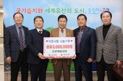 한방통신사 신유철기자 기자 | 고성군은 고성제일교회(담임목사 김종철)가 12월 11일 고성군청을 방문하여 지난달 8일 개최한 ‘제14회 사랑과 나눔 바자회’를 통해 조성한 수익금 500만 원을 관내 저소득층 지원을 위해 기탁했다. 고성제일교회는 매년 지역사회의 소외된 이웃을 돕기 위한 바자회를 개최하고 있으며, 올해로 14회를 맞은 ‘사랑과 나눔 바자회’는 교인과 지역주민 모두가 함께 참여해 따뜻한 나눔의 정을 실천하는 뜻깊은 행사로 자리매김하고 있다. 김종철 고성제일교회 담임목사는 “한마음으로 참여한 바자회를 통해 뜻깊은 나눔을 실천할 수 있어 감사하다”라며, “앞으로도 이웃에게 희망이 되고 지역사회에 온정을 전할 수 있도록 지속적으로 노력하겠다”라고 전했다. 이날 기탁된 성금은 경남사회복지공동모금회를 통해 관내 저소득층을 위해 소중히 사용될 예정이다. [뉴스출처 : 경상남도고성군]