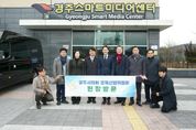 한방통신사 신유철기자 기자 | 경주시의회 경제산업위원회가 26일 경주시 스마트미디어센터를 방문해 사업 추진현황을 점검하고 관계 직원들을 격려했다. 이번 현장방문은 2025년 12월 경주시 조직개편으로 인해 경제산업위원회 소관으로 새롭게 편입된 스마트미디어센터의 사업 현황을 면밀히 파악하고 의정활동에 필요한 자료를 확보하여 사업이 원활히 추진될 수 있도록 하기 위해 마련됐다. 위원들은 현장에서 스마트미디어센터의 공간 구성, 시설 운영 현황 등을 살펴보고, 특히 AI 시대를 맞이하여 시민들을 대상으로 한 '챗GPT 원데이 클래스'등 다양한 교육 프로그램에 대해 알아보는 시간을 가졌다. 또한 스마트관광도시 조성 안정화 사업, 2026 경주APEC XR 모빌리티 투어버스 운영 사업 등 주요 사업에 대한 설명을 청취했으며, 사업추진 개선 방향에 대해서도 심도 있는 논의를 이어갔다. 정종문 위원장은 “포스트 APEC 시대를 맞이하여 스마트미디어센터가 중심이 되어, 스마트관광도시로서 경주를 널리 알리고 AI 시대에 맞는 다양한 콘텐츠를 개발하는 등 경주시 발전에 힘써주길 바라며, 오늘 현장에서 확인한 사항들을