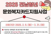 한방통신사 신다은기자 기자 | 무안군은 청년의 문화생활과 자기계발을 지원하기 위해 ‘2026년 전남 청년 문화복지카드 지원사업’ 대상자를 모집하고 있다고 밝혔다. 올 2월 한 달간 접수 결과 방문 신청 170건, 온라인 신청 2,075건 등 총 2,245건이 접수됐으며, 군은 아직 신청하지 못한 청년들이 지원을 받을 수 있도록 3월 말까지 추가 접수를 진행할 예정이다. 지원 대상은 2024년 2월 9일 이전부터 전라남도에 주소를 두고 무안군에 2년 이상 거주한 19세부터 28세까지(1998~2007년 출생) 청년이다. 대상자로 선정되면 1인당 연 25만 원의 문화복지비를 체크카드 포인트 형태로 지원받게 된다. 문화복지비는 전라남도 내에서 도서 구입, 영화·공연 관람, 학원 수강, 여행 등 문화복지 분야에 사용할 수 있으며 온라인 결제와 타 시·도 사용은 제한된다. 한승헌 인구정책과장은 “문화복지카드 지원사업이 청년들의 문화활동과 자기계발에 도움이 되길 바란다”며 “앞으로도 청년 지원 정책을 지속적으로 추진해 나가겠다”고 말했다. 신청은 농협카드 누리집 또는 앱을 통한 온라인