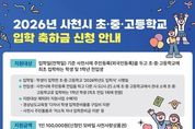 한방통신사 신유철기자 기자 | 사천시는 교육복지 강화를 위해 2026년부터 초·중·고등학교 입학 축하금 지원 대상을 확대해 시행한다고 4일 밝혔다. 시는 2023년부터 출생 후 처음으로 초등학교에 입학하는 학생을 대상으로 지원해 오던 입학 지원금을 2026년부터는 지원 대상을 중학교·고등학교 신입생까지 확대하기로 했다. 이에 따라 올해 지원 대상은 입학일 또는 전학일 기준 사천시에 주소를 두고 관내 초·중·고등학교에 최초 입학하는 신입생 또는 1학년 전입생이며, 학생의 부모 또는 보호자가 입학 학교나 주소지 관할 읍·면·동 행정복지센터를 방문해 신청하면 된다. 신청이 완료되면 신청 다음 달 20일 이내에 신청인 명의의 휴대전화로 1인당 10만 원 상당의 모바일 사천사랑상품권이 지급되며, 해당 상품권은 신학기 학용품이나 준비물 구입 등 교육비용으로 활용할 수 있다. 다만, 두 자녀 이상 가정 또는 저소득층 가정의 경우 사천교육지원청의 ‘신입생 다자녀학생 입학준비물 지원사업’이나 사천시 주민돌봄과의 ‘저소득층 자녀 입학준비금 지원사업’과 중복 지원은 불가하다. 또한, 홈스쿨링 등 미입학 학