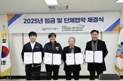 한방통신사 신유철기자 기자 | 여주도시공사와 민주노총 공공운수노조 여주도시공사지회는 12월 9일 여주도시공사 사옥에서 2025년 임금 및 단체협약 체결식을 개최했다고 밝혔다. 이번 협약은 상호 신뢰와 존중을 바탕으로 진행된 성실한 교섭의 결실로, 노사 상생과 지속 가능한 발전을 위한 중요한 발판이 될 전망이다. 공사와 노동조합은 이번 협약을 통해 직원들이 안정적인 근무여건 아래 역량을 발휘할 수 있는 환경을 조성하고, 공공기관으로서 사회적 책임을 다하기 위한 제도 개선과 협력 체계를 강화해 나갈 방침이다. 임명진 사장은 “이번 임금·단체협약은 노사 간 소통과 이해를 바탕으로 이루어낸 결실”이라며, “앞으로도 신뢰 기반의 노사 협력을 통해 시민에게 더 나은 공공서비스를 제공할 수 있도록 노력하겠다"고 밝혔다. 여주도시공사는 앞으로도 합리적인 노사관계 정착을 위해 소통과 협력을 강화하고, 시민 중심의 공기업으로서 책임과 역할을 다하기 위한 다양한 노력을 이어갈 계획이다. [뉴스출처 : 경기도 여주시]