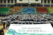 한방통신사 김성의 기자 | 진안군이 26일 오후 진안문예체육회관에서 군민 500여 명과 주요 내빈이 참석한 가운데 ‘진안양수발전소 유치 성공기원 범군민 결의대회’를 성황리에 마무리하고, 유치 성공에 대한 강력한 의지를 대내외에 선포했다. 이날 결의대회에는 전춘성 진안군수를 비롯해 김관영 전북특별자치도지사, 안호영 국회의원, 동창옥 진안군의회 의장, 그리고 한국동서발전 권명호 사장 등이 참석하여 진안의 도약에 힘을 실었다. 먼저 성공기원공연으로 준비된 붓글씨 공연(캘리그라피)에서는 ‘새로운 시작, 100년 미래 진안양수발전소’라는 문구를 역동적인 붓놀림으로 그리며 진안의 강력한 의지를 예술적으로 승화시켜 참석자들의 큰 박수를 받았다. 이어 진행된 구동수 위원장과 신갑수 위원장의 결의문 낭독 직후 두 위원장의 선창에 맞춰 500여 군민이 하나 된 목소리로 일제히 손 피켓 펼치기 퍼포먼스가 진행돼 군민의 하나 된 힘으로 양수발전소를 진안에 유치하겠다는 결의를 다졌다. 특히, 마지막 유치 성공 다짐 퍼포먼스는 참석자들의 마음을 하나로 모았다. 군민과 주요 내빈들이 행사 시작 전 대형애드벌룬에