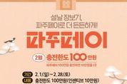 한방통신사 신유철기자 기자 | 파주시는 다가오는 설 명절을 맞아 추가 충전금 혜택을 받을 수 있는 충전 한도를 기존 70만 원에서 100만 원으로 상향한다. 2월 한 달간 100만 원을 충전할 경우, 연중 상시 지급되는 10% 인센티브가 적용돼 추가 충전금 10만 원이 더해진 총 110만 원을 사용할 수 있다. 이를 통해 명절을 앞두고 소비 지출이 늘어나는 시민의 경제적 부담을 덜고, 지속적인 경기 침체로 어려움을 겪고 있는 관내 소상공인의 매출이 증대될 것으로 기대된다. 파주시 관계자는 “이번 파주페이 확대 발행이 설 명절 장바구니 물가 부담을 완화하고, 지역 골목상권에 활력을 불어넣는 마중물이 되길 바란다”라며, “시민 여러분의 많은 관심과 이용을 부탁드린다”라고 전했다. 한편, 파주페이는 ‘경기지역화폐’앱 및 관내 농협을 통해 충전이 가능하며, 현재 음식점, 학원, 전통시장 등 1만 6천여 개의 가맹점에서 사용할 수 있다. 파주시는 시민 편의 증진과 지역경제 활성화를 위해 지난해 가맹점 연매출 제한 기준을 12억 원에서 30억 원으로 대폭 완화해 사용처를 확대한 바 있으며, 어려운 재정 여건 속에서도 상시