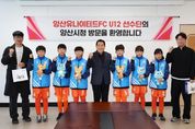 한방통신사 신유철기자 기자 | 양산시는 지난 3일 시청 3층 상황실에서 제55회 전국소년체육대회 경상남도 대표 선발전을 앞두고 훈련에 매진 중인 ‘양산유나이티드FC U12’ 선수단을 초청해 격려 간담회를 가졌다. 이날 간담회에는 양산유나이티드FC 배익두 대표이사와 조용기 감독을 비롯해 오지훈(부산 좌산초), 박라현(가촌초), 박승우(금송초), 강준서(동산초), 유현우(황산초), 김가인(금오초) 등 팀을 대표하는 12세 이하 유망주 선수 6명이 참석했다. 이번 간담회는 지역을 대표해 구슬땀을 흘리고 있는 어린 선수들의 사기를 북돋우고, 현장의 목소리를 청취하기 위해 마련됐다. 양산유나이티드FC U12팀은 현재 다가오는 전국소년체전 경남 대표 선발전을 대비해 강도 높은 훈련을 이어가고 있다. 지난 2021년 법인화와 함께 공공스포츠클럽으로 출범한 양산유나이티드FC는 짧은 역사에도 불구하고 괄목할 만한 성과를 거두며 영남권 최고의 유소년 축구 명문으로 자리 잡았다. 주요 성과로는 ▲경남 초·중 종합체육대회 6회 연속(2020~2025) 우승 ▲2년 연속(2023~2024) 전국소년체육대회 경