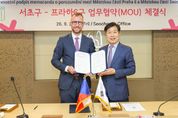 한방통신사 신유철기자 기자 | 서울 서초구는 지난 26일 구청 5층 대회의실에서 체코 프라하 6구와 문화, 예술, 교육 분야 등 상호 교류 우호증진을 위한 우호도시협정 양해각서(MOU)를 체결했다고 밝혔다. 프라하 6구는 체코 프라하에서 가장 넓은 행정구역으로, 바츨라프 하벨 국제공항과 체코 공과대학교, 각국 대사관과 주체코 한국대사관이 위치하고 있다. 또 한인 교민이 가장 많이 거주하는 지역으로 서울시 25개 자치구 중 가장 안전하고 살기 좋은 도시로 알려진 서초구와 많은 공통점을 지닌 도시다. 이번 협약을 위해 지난 6월 말 전성수 구청장을 비롯한 대표단은 체코 프라하 6구를 방문해 야쿱 스타렉 구청장과 간담회를 갖고 문화·교육 등 다양한 분야에서 지속 가능한 협력 방안을 폭넓게 논의한 바 있다. 구는 이번 협약을 계기로 프라하 6구와의 교류를 본격적으로 확대해 한·체코 간 미래지향적 파트너십 구축에 기여해 나간다는 계획이다. 또 이번 방문 기간 중 프라하 6구 대표단은 9월 27일부터 28일까지 열리는 서초구 대표축제인 ‘서리풀뮤직페스티벌’에 참여한다. 아울러 양재천에 설치된 ‘바츨라프 하벨
