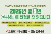 한방통신사 신유철기자 기자 | 고용노동부는 구인난을 겪는 기업이 이주노동자(E-9)를 고용할 수 있도록 ‘26년도에도 5차례 신규 고용허가 신청․접수를 진행할 예정이라고 밝혔다. 이에 따라 기업에서는 경영 상황에 따라 인력 필요시기에 맞춰 고용허가를 신청하여 외국인노동자를 고용할 수 있을 것으로 기대된다. 올해부터는 호텔․콘도업 허용 지역에 전라북도가 새롭게 추가되며, 비수도권의 제조업체 사업장별 추가고용 한도가 30%(기존 20%)로 상향되고, 비수도권 소재 제조업 유턴기업은 기업규모와 무관하게 외국인 고용이 허용된다. 또한, 작물재배업 시설원예․특작분야 1,000~2,000㎡미만의 경우에도 고용한도 8명을 인정하고, 고용허가 업종에 곡물 및 기타 식량작물 재배업이 추가된다. 그동안 한시 운영된 조선업 별도 쿼터는 제조업 쿼터로 통합 운영된다. 1회차 신규 고용허가 규모는 전체 15,784명(제조업 11,275명, 농·축산업 2,382명, 어업 1,495명, 건설업 492명, 서비스업 140명)으로, 1월 26일부터 2월 10일까지 신청·접수 예정이다. 신청 결과는 3월 3일에 발