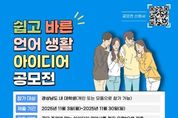 한방통신사 신유철기자 기자 | 경상국립대학교(GNU·총장 권진회) 국어문화원(원장 정영훈 국어국문학과 교수)은 ‘경남 우리말 가꿈이 활동 지원 사업’의 일환으로 ‘쉽고 바른 언어생활 아이디어 공모전’을 개최한다. ‘경남 우리말 가꿈이 활동 지원 사업’은 우리말과 우리글을 바르게 사용하도록 알리는 언어문화 개선 운동으로, 경상국립대학교 국어문화원에서는 10년째 이 사업을 이어 오고 있다. 이번 공모전은, 경상남도 내 대학생을 대상으로 올바른 언어문화 확산에 기여할 수 있는 실용적·창의적인 아이디어를 발굴하고자 마련했다. 공모 주제는 ▲쉽고 바른 공공언어 사용 확산 방안 ▲공공기관 언어 개선 방안 ▲세대 간 원활한 소통을 위한 방안 등으로, 일상과 공공 영역에서 누구나 이해하기 쉬운 언어환경을 조성할 다양한 제안을 제출하면 된다. 제출 기간은 11월 3일부터 30일까지이다. 참가 희망자는 공모 주제에 맞는 아이디어 제안서를 작성해 전자우편(ckc@gnu.ac.kr)으로 제출하면 된다. 자세한 내용은 경상국립대학교 국어문화원 누리집에서 확인할 수 있다. 선정 결과는 12월 12일에 국어문화원 누리집에서 발표한다. 으