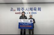 한방통신사 신유철기자 기자 | 파주가 낳은 배구 인기인(스타)이자 아이비케이(IBK)기업은행 알토스 소속 이주아 선수가 고향 후배들을 위해 1천만 원을 기부하며 남다른 고향 사랑을 전했다. 파주시체육회는 지난 23일 체육회 회의실에서 이주아 선수와 부모, 파주시배구협회 관계자(박희수 회장, 황우연 부회장, 전찬혁 사무국장) 등이 참석한 가운데 기부금 전달식을 개최했다. 이번에 전달된 기부금은 파주 지역 생활체육 활성화를 비롯해 유소년 및 학생 선수 육성, 체육 기반 시설 개선 등 파주시 체육 발전을 위한 다양한 사업에 사용될 예정이다. 이주아 선수는 “고향 파주에서 많은 응원과 도움을 받으며 운동을 시작했고, 덕분에 지금의 자리까지 올 수 있었다”라며, “지역 체육 발전과 후배 선수들에게 작게나마 힘이 되고자 기부를 결심하게 됐다”라고 소감을 밝혔다. 이어 “앞으로도 파주 체육이 더욱 활성화돼 꿈을 키우는 후배들이 더 나은 환경에서 운동할 수 있기를 바란다”라고 덧붙였다. 김종훈 파주시체육회장은 “파주 출신 국가대표 선수로 훌륭하게 성장한 이주아 선수가 고향을 잊지 않고 나눔을 실천해 준 데 대해