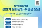 한방통신사 신유철기자 기자 | 영주하망도서관은 시민들의 인문학적 소양 함양과 문화예술 활동 기회 확대를 위해 오는 5일부터 상반기 문화강좌 수강생을 모집한다고 밝혔다. 이번 문화강좌는 3월 18일부터 6월 10일까지 각 12차시 과정으로 운영되며, 인문학과 미술 분야로 구성해 시민들이 일상 속에서 문화적 여유를 누릴 수 있도록 마련됐다. 강좌별 내용은 다음과 같다. △인문학과 역사를 연결하여 스스로를 성찰해 보는 ‘사람을 만나는 역사 인문학’(매주 수요일 오전 10시), △전통 재료로 꽃을 담아내는 ‘수묵으로 그리는 사계절 꽃 그림’(매주 목요일 10시), △나의 이야기와 관심사를 그림으로 표현하는 ‘손그림 아크릴화 일러스트’(매주 금요일 10시) 강좌가 운영될 예정이다. 신청 대상은 영주시에 주소지를 둔 성인으로 신청은 3월 5일 오전 10시부터 선착순 마감 시까지 영주시 공공도서관 누리집에서 로그인 후 신청할 수 있다. 수강료는 무료이며, 준비물이 필요한 강좌의 경우 재료비는 별도 부담이다. 김호정 선비인재양성과장은 “이번 강좌를 통해 지역 주민들이 일상 속에서 인문학적 소양을 넓히고 예술적 감
