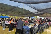 한방통신사 신유철기자 기자 | 지난 30일, 화개면 그린나래공원에서 ‘꽃같이 아름다운 100세 잔치’가 성황리에 개최됐다. 화개면 주민자치회(회장 김용덕)에서 마련한 이번 행사는 경로효친 사상을 고취하고 어르신들의 노고에 감사하는 마음을 전하기 위해 마련됐으며, 화개면 어르신·주민, 기관·사회단체 등 700여 명이 참석해 자리를 빛냈다. 이날 주민들은 어르신들을 경공하는 봉사의 마음으로 관내 기관·사회단체 회원들이 앞장서서 음식을 대접하고 자발적으로 봉사하는 등 하나된 모습을 보였다. 특히, 화개면과 특별한 인연으로 해마다 화개면 발전에 힘을 보태는 ㈜디케이모터스 노기식 대표이사도 기부금을 전달해 화제를 모았다. 행사는 여는마당의 흥겨운 공연으로 시작되어 개회식, 다채로운 프로그램으로 꾸며진 어울림마당과 나눔마당 순으로 진행됐다. 행사의 개회식은 茶이야기라는 문화창작극으로 진행해 특별함을 더했다. 화개풍물패와 왕성초등학교 학생, 화개 차 문화반 등이 차밭에서 찻잎을 따고 덖고 비비는 등 일연의 과정을 판소리와 국악을 더해 표현했다. 그렇게 우려진 차는 임효원 화개면장,