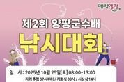 한방통신사 신유철기자 기자 | 양평군은 오는 25일 관내 월산낚시터에서 ‘제2회 양평군수배 낚시 대회’를 개최한다고 밝혔다. 이번 대회는 낚시를 통해 군민과 낚시 동호인이 함께 어울리는 축제의 장을 마련하고, 건전한 낚시문화 조성과 지역 경제 활성화를 도모하기 위해 마련됐다. 낚시 어종은 향어와 잉어이며, 참가 신청은 10월 13일부터 선착순 130명까지 가능하다. 참가자들은 당일 현장에서 지정된 구역에서 낚시 실력을 겨루게 되며, 대회에는 대어상(1등 150만 원), 특별상, 행운상 등 다양한 부문에 걸쳐 푸짐한 경품이 준비되어 있다. 전진선 양평군수는 “양평의 맑은 물과 아름다운 자연 속에서 낚시를 즐기며 군민과 낚시 동호인 모두가 편안히 쉴 수 있는 자리가 되길 바란다”며, “이번 대회를 통해 낚시를 매개로 한 관광 활성화와 지역 경제에 활력을 불어넣을 것으로 기대한다”고 말했다. 한편, 양평군은 낚시 대회뿐만 아니라 수산자원 조성 사업, 낚시터 환경 정비 등 건전한 낚시 문화 확립과 수상 생태계 보전 활동을 지속적으로 추진하고 있으며, 앞으로도 친환경적인 낚시 기반 조성을 통해 양평의 깨끗한