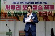 한방통신사 신유철기자 기자 | 양평군 서종면은 지난 11일 서후리 마을회관 일원에서 ‘제3회 서후리 문화예술축제 및 탁구장 개관식’을 성황리에 개최했다. 이날 행사에는 홍주표 서종면장과 박명숙·이혜원 경기도의회 의원, 지역 기관·단체장, 평생학습센터 회원, 주민 등 200여 명이 참석해 마을의 문화와 소통이 어우러진 뜻깊은 시간을 가졌다. 행사에서는 평생학습센터 회원들이 준비한 다양한 작품 전시와 공연이 진행되며, 주민들의 재능과 열정을 나누는 무대가 마련됐다. 이어 진행된 탁구장 개관식에서는 새롭게 조성된 생활체육 공간을 둘러보며, 향후 마을 공동체의 건강한 여가활동 거점으로서의 역할에 대한 기대를 나눴다. 홍주표 서종면장은 “주민 여러분이 함께 준비한 문화예술축제와 탁구장 개관은 서종면 공동체의 또 다른 도약을 상징한다”며, “앞으로도 주민이 주도하는 생활문화와 건강한 여가문화가 자리 잡을 수 있도록 지속적인 지원을 아끼지 않겠다”고 밝혔다. 한편, 이번 행사는 지역 주민의 참여로 이뤄진 생활문화 축제이자 건강한 공동체 회복의 장으로, 문화와 체육이 조화를 이루는 서종면의 새로운 지역 축제로 평