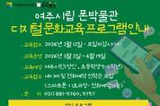 한방통신사 신유철기자 기자 | 여주세종문화관광재단 여주시립 폰박물관은 2026년 상반기 디지털 역량 강화를 위한 '디지털문화교육프로그램'수강생을 모집한다. 이번 교육은 급변하는 디지털 환경 속에서 시민들이 일상에서 활용 가능한 실질적인 디지털 기술을 익히고, 창의적 콘텐츠제작 능력을 기를 수 있도록 기획됐다. AI활용부터 스마트폰 기초, 사진, 디지털 디자인, 캘리그라피까지 폭넓은 주제로 구성해 세대별 맞춤 교육을 제공한다. 교육 운영 기간은 2026년 3월 3일부터 6월 19일 까지이며, 수강신청은 2월 12일부터 선착순으로 접수한다. 여주시민을 대상으로 하며 성인과 초등학교 5-6학년 과정으로 나누어 운영된다. ■ 성인 대상 프로그램 (총 14회 과정) ▶ AI 숏폼 제작하기 AI 기초 이해부터 숏폼 콘텐츠 제작 실습까지 진행한다. (3.10.~6.16. 매주 화 13:00~15:00) ▶ 스마트폰 사진교실 – 손안의 기록 스마트폰을 활용한 촬영 기법과 감성 사진 표현을 배운다. (3.10.~6.16. 매주 화 15:30~17:30) ▶ 나만의 디지털 디자인 스토리 with 캔바 캔바를 활용한 디지털 디