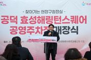 한방통신사 신유철기자 기자 | 박강수 마포구청장은 12월 3일 오후 5시, 공덕역 10번 출구 앞 광장에서 열린 ‘공덕 효성해링턴스퀘어 공영주차장 개장식’에 참석해 시설 개장을 축하했다. 이번에 문을 연 공덕 효성해링턴 스퀘어 공영주차장(도화동 25-13)은 총 21면 규모로 조성된 거주자우선주차장으로, 구는 공공기여를 통해 확보한 이 공간을 주민들에게 개방해 운영하기로 했다. 아파트와 상가, 오피스가 밀집한 도화동·공덕동 일대는 주차 수요에 비해 공간이 부족해 주민과 방문객 모두가 지속적인 불편을 겪어 왔다. 이번 공영주차장 운영을 통해 지역에서 꾸준히 제기돼 온 주차 불편이 상당 부분 해소될 것으로 기대되며, 생활권 내 주차 편의도 한층 개선될 전망이다. 행사는 식전 공연을 시작으로 개회 및 내빈소개, 경과보고에 이어 박강수 마포구청장의 기념사가 진행됐으며, 이어 테이프 커팅과 기념촬영 후 시설 라운딩이 이어졌다. 추운 날씨 속에서도 박강수 마포구청장을 비롯해 백남환 구의회 의장, 지역 주민 등 약 100여 명이 참석해 주차 공간 확충의 성과를 함께 축하했다. 박강수