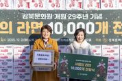 한방통신사 신유철기자 기자 | 강북구의회 김명희 의장(번1·2동, 수유2·3동)은 지난 12월 2일, 강북문화예술회관 소나무홀에서 열린 강북문화원 개원 29주년 기념 ‘사랑의 라면트리’ 행사에 참석해 지역 이웃을 위한 나눔 활동에 함께했다. ‘사랑의 라면트리’ 행사는 강북문화원이 주민들로부터 받아온 관심과 성원을 어려운 이웃들에게 되돌리기 위해 마련한 사회공헌 행사로, 올해로 3회째를 맞았다. 한국마사회 지원사업으로도 선정되며 지역의 대표적 나눔 행사로 자리잡았다. 행사는 라면 전달식을 시작으로 설장구 식전공연, 유공자 표창, 문화공연 등 다양한 프로그램으로 채워졌다. 특히 올해는 강북미술협회가 20여 점의 작품을 기증해 ‘그림 기부전’을 함께 열며, 문화와 나눔을 결합한 새로운 형태의 기부가 주목을 받았다. 김명희 의장은 황정희 문화원장과 함께 라면 전달식에 참석해 정성을 모은 라면 1만 개를 어려운 이웃에게 전달할 준비를 마쳤으며, ‘2025 서울시 구의원 한마음 체육대회’에서 받은 ‘아차상’ 상금도 문화원에 기부해 뜻을 더했다. 김명희 의장은 “3년째 이어지는 ‘사랑의 라면트리’가 이제는 지역