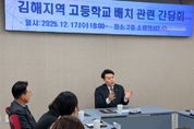 한방통신사 신유철기자 기자 | 경상남도의회 이시영(국민의힘, 김해7) 의원은 12월 17일 김해교육지원청에서 '김해지역 고등학교 배치 관련 간담회'를 열었다. 이날 간담회에는 경남도교육청 학교지원과 최치용 과장, 김해교육지원청 교육지원국 정원태 국장, 김해시청 교육체육국 김재한 국장을 비롯한 관계자 및 지역 주민이 함께 참석해, 장유권 고등학교 부족에 따른 과밀과 원거리 통학 불편 등 지역 교육현안을 공유하고 실질적인 개선 방향을 논의했다. 특히 이번 간담회는 기존의 문제 제기에서 한 걸음 더 나아가, 실행 가능한 대안과 기관별 역할을 구체화하는 데 초점을 맞췄다. 이 의원은 “지금은 김해지역 교육현안을 두고 관계기관이 같은 방향으로 논의와 협력을 모아 역할을 분명히 하고, 학생·학부모 불편을 줄일 수 있는 대책을 신속히 마련해야 한다”며 간담회 취지를 밝혔다. 현재 장유지역은 교육수요가 집중되는 지역임에도, 고등학교 규모와 수가 수요에 비해 충분하지 못해 과밀과 통학 부담이 동시에 커지고 있는 상황이다. 이에 참석자들은 장유권 고교 수요 증가에 대응하기 위해 구도심권 학교의 이전·재배