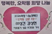 한방통신사 신유철기자 기자 | 여주시 점동면에 소재한 ㈜성건은 지난 5일 오학동행정복지센터를 방문하여 지역 내 어려운 이웃을 위한 성금 50만 원을 기탁했다. ㈜성건은 토공사업, 포장공사업, 상·하수도 설비공사업, 석면 해체·제거업 등을 영위하는 지역 기업으로, 지난해에 이어 올해도 이웃돕기 성금을 기탁하며 지역사회 나눔문화 확산에 앞장서고 있다. 김성현 대표는 “작은 정성이지만 어려운 이웃들에게 조금이나마 도움이 되길 바라는 마음으로 성금을 기탁하게 됐다”며 “앞으로도 지역사회와 함께하는 기업으로서 지속적인 나눔을 실천하겠다”고 말했다. 이에 김병선 오학동장은 “지난해에 이어 올해도 따뜻한 나눔을 실천해 주신 김성현 대표님께 감사드린다”며 “기탁해 주신 성금은 도움이 필요한 관내 취약계층을 위해 소중히 사용하겠다”고 전했다. 한편, 이날 기탁된 성금은 오학동 지역 내 어려운 이웃을 위한 복지사업에 사용될 예정이다. [뉴스출처 : 경기도 여주시]