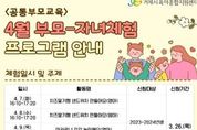 한방통신사 신유철기자 기자 | 거제시육아종합지원센터는 영유아 가정을 대상으로 공통부모교육 부모-자녀체험 활동 4월 참여자를 3월 26일부터 31일까지 모집한다고 밝혔다. 공통부모교육 부모-자녀체험은 일상에서 쉽게 구할 수 있는 재료를 활용한 영유아 활동 및 상호작용을 통해 부모-자녀 관계 증진에 중점을 둔 활동이다. 4월 부모-자녀체험활동은 센터 내 활동으로 영아 활동 4강좌, 유아 활동 2강좌가 센터 3층 오색키움터에서 진행될 계획이다. 센터 관계자는 “공통부모교육의 취지를 살려 부모의 양육 역량을 높이고, 가정 내 긍정적인 상호작용을 지원하는 프로그램을 지속적으로 운영하겠다”고 전했다. 자세한 사항은 거제시육아종합지원센터 홈페이지 또는 전화로 확인 가능하다. [뉴스출처 : 경상남도거제시]