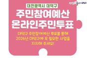 한방통신사 신태공 기자 | 대전 대덕구는 오는 22~30일 2026년 주민참여예산 사업 선정을 위한 온라인 주민투표를 진행한다고 16일 밝혔다. 올해 투표 대상은 온라인 접수와 동별 지역회의를 거쳐 우선순위로 선정된 안건 가운데 소관 부서 적격 검토를 통과한 28개 사업이다. 대덕구 거주민은 물론 대덕구 소재 직장인·학생 모두 투표에 참여할 수 있으며, 대덕구 주민참여예산제 홈페이지에 로그인해 본인인증을 마친 뒤, 관심 사업 최대 3개를 선택해 투표하면 된다. 최종 결과는 주민투표 점수와 ‘예산참여 구민위원회’ 서면심사를 합산해 고득점순으로 확정, 내년도 예산(총 2억 4000만원)에 반영된다. 최충규 대덕구청장은 “주민참여예산제는 구민 참여로 완성되는 제도”라며 “많은 주민이 투표에 동참해 대덕구에 꼭 필요한 사업을 직접 선택해 주시길 바란다”고 말했다. 한편, 대덕구는 주민참여예산 사업선정을 위해 자체 홈페이지를 통한 온라인 사업제안, 투표 절차를 진행해 오고 있다. [뉴스출처 : 대전시대덕구]
