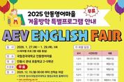 한방통신사 신유철기자 기자 | 안동시는 오는 2026년 1월 27일부터 29일까지 국립경국대학교에 내 안동영어마을에서 운영하는 겨울방학 특별프로그램 'AEV (Andong English Village) English Fair'의 참가 학생을 선착순 으로 모집한다고 밝혔다. 참가 신청은 12월 15일부터 국립경국대학교 안동캠퍼스 평생교육원 누리집을 통해 가능하며, 다양한 체험형 영어 프로그램이 마련돼 있어 조기 마감이 예상된다. 이번 프로그램은 관내 초등학교 2~5학년 학생 180명을 대상으로 하며, 원어민 교사와 함께하는 게임과 놀이 기반의 영어 수업으로 구성된다. 학생들은 총 8개의 체험수업 중 4개를 직접 선택해 참여할 수 있고, 다양한 활동을 즐길 수 있는 5개의 체험 부스도 함께 운영된다. 이를 통해 영어 학습과 놀이가 자연스럽게 융합된 체험 중심의 영어교육을 제공하며, 참가비는 전액 무료다. 안동시 관계자는 “추운 겨울방학 기간, 안동영어마을에서의 특별한 체험을 통해 영어에 대한 흥미를 높이고 새로운 친구들과의 교류와 협력을 통해 학생들이 더욱 성장하는 뜻깊은 시간이 되길 바란다”고 밝혔다