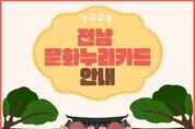 한방통신사 신다은기자 기자 | 영광군은 문화격차 해소와 취약계층의 문화향유 기회 확대를 위해 지난 2월 2일부터 ‘2026년 통합문화이용권(문화누리카드)’ 발급 신청과 자동재충전을 시작했다고 밝혔다. 문화누리카드는 문화예술·국내여행·체육활동을 지원하는 카드로 공연·영화·전시 관람, 스포츠 경기 관람, 도서 및 음반 등 문화상품 구입뿐 아니라 군내 문화예술·관광·체육 가맹점 및 숙박시설 등에서도 사용할 수 있으며, 2026년 지원 대상은 만 6세 이상 기초생활수급자 및 차상위계층(2020년 12월 31일 이전 출생자)으로, 기본 지원금은 1인당 15만 원이고, 청소년기(13세~18세)와 준고령기(60세~64세) 해당자는 1만 원이 추가 되어 16만 원을 지원받을 수 있다. 올해 카드 발급 대상은 기존에 문화누리카드를 발급받지 않았거나 자동재충전 대상에서 제외된 경우로, 2026년 2월 2일부터 11월 30일까지 발급받을 수 있으며 사용은 2026년 12월 31일까지 가능하다. 또한, 자동재충전 대상은 문화누리카드 발급자 중 2026년에도 수급 자격을 유지하면서 2025년 카드 사용금액이 3만 원 이상인 경우, 별