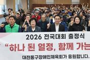 한방통신사 신태공 기자 | 대전 동구는 지난 23일 동구청 대회의실에서 ‘2026년 동구장애인체육회 전국대회 출정식’을 개최했다고 밝혔다. 이날 출정식에는 박희조 동구청장을 비롯해 오관영 동구의회 의장, 종목별 협회 임원 및 선수 등 60여 명이 참석했으며, 출정복 전달과 선수대표 결의문 낭독을 통해 선수단의 각오를 다졌다. 특히 참가 선수들은 그동안 갈고닦은 기량을 바탕으로 정정당당한 경기와 최선을 다하는 자세로 동구의 명예를 드높일 것을 다짐했다. 구는 이번 출정식을 통해 파크골프, 게이트볼, 론볼 등 3개 종목 선수들의 사기 진작과 화합을 도모하고, 장애인 체육 활성화를 위한 지원을 지속적으로 확대해 나갈 방침이다. 선수단은 오는 9월부터 11월까지 ▲론볼(9월 29일 인천광역시장배 전국대회) ▲게이트볼(10월 23일 금산인삼배) ▲파크골프(10월 31일 중앙회장배 전국대회) 등 각종 전국대회에 순차적으로 출전할 예정이다. 박희조 동구청장은 “장애를 넘어 끊임없이 도전하는 선수들의 열정과 노력에 진심어린 응원을 전한다”며 “앞으로도 누구나 차별 없이 스포츠를 즐기고 역량을 펼칠 수