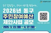 한방통신사 신태공 기자 | 대전 동구는 2026년 주민참여예산 제안사업을 본격 추진하며, 내달 27일까지 공모 접수를 실시한다고 24일 밝혔다. ‘주민참여예산제’는 주민이 사업 발굴부터 심사, 선정까지 예산 편성 전 과정에 직접 참여해 지역에 필요한 사업을 제안하는 제도다. 이번 공모는 총 1억 원 규모로 추진되며, 사업별 2천만 원 한도 내에서 행정동 단위 ‘주민 생활밀착형 소규모 단년도 사업’을 대상으로 한다. 참여 대상은 동구 주민을 비롯해 지역 내 직장인과 학생, 비영리단체 회원 등 누구나 가능하며, 동 행정복지센터 방문 또는 주민참여예산제 전용 온라인 플랫폼(동구 홈페이지 ' 구민참여 ' 주민참여예산제)을 통해 신청할 수 있다. 접수된 제안사업은 사업 추진부서의 적격성 검토와 동 지역회의 심사를 거쳐, 온라인 구민투표 및 동구 주민참여예산위원회 심의를 통해 최종 선정된다. 선정된 사업은 2027년도 본예산에 반영돼 추진될 예정이다. 박희조 동구청장은 “주민의 시선에서 발굴된 사업이 지역에 실질적인 변화를 만들어내는 출발점이 될 것”이라며 “생활 속에서 체감할 수 있