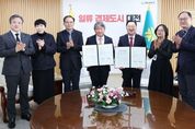 한방통신사 신태공 기자 | 대전시와 건양대학교는 9일 오전 시청 응접실에서 ‘신교통단(3칸 굴절차량) 시범사업 차고지 조성을 위한 부지사용 업무협약’을 체결했다. 이번 협약을 통해 건양대학교는 서구 관저동 건양대학교 병원 내 주차장 부지 일부를 신교통수단(3칸 굴절차량) 시범사업 차고지로 대전시에 무상 제공하기로 했다. 대전시는 해당 부지에 차고지를 조성하여 건양대학교와 병원을 이용하는 이용자들이 신교통수단을 통해 편리하게 이용할 수 있도록 노선을 운영하게 된다. 국내 최초로 대전시에 도입되는 신교통수단은 대규모 수송력(230여 명)을 갖춘 3칸 굴절차량으로 건양대병원~용소삼거리~도안동로~유성온천역 구간 총 6.5km 전용차로에서 2026년 3월 시범운영을 목표로 사업 추진 중이다. 전용차로 운행에 따른 정시성 확보가 가능하고, 실내 공간이 넓어 대중교통 이용이 불편했던 교통약자들도 편리하고 쾌적하게 이용할 수 있는 교통수단으로 평가받고 있다. 현재 해당 차량에 대한 관련법과 제도가 없어 규제 실증특례를 적용받아 추진하고 있지만, 작년 기획재정부 ‘정부 '기업․지역 투자활성화 방안'추진