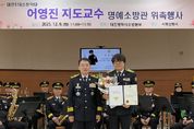 한방통신사 신태공 기자 | 대전소방본부는 9일 대전서부소방서 3층 대강당에서 대전페스티발윈드오케스트라 대표인 어영진 지도교수를 ‘대전소방본부 명예소방관’으로 위촉하는 행사를 개최했다. 이번 위촉은 1987년 대전119소방악대 창단부터 현재까지 38년간 악대원의 역량 강화와 대전소방의 대외적 위상 제고에 기여한 어영진 지도교수의 공로를 기리기 위해 마련됐다. 행사는 ▲공적 소개 및 기념영상 상영 ▲명예소방관 위촉장 수여 ▲축하곡 지휘공연 ▲오찬 간담회 순으로 진행됐다. 특히 어영진 지도교수는 소방령 계급장과 정복을 착용하고 소방악대와 함께 축하곡을 직접 지휘해 참석자들로부터 큰 호응을 받았다. 김문용 대전소방본부장은 “오랜 기간 소방악대의 음악적 성장과 안정적인 운영을 위해 헌신해 주신 어영진 지도교수님께 깊이 감사드린다”며 “앞으로도 대전소방악대의 음악적 역량 향상을 위해 많은 관심과 지지를 부탁드린다”라고 전했다. 대전소방본부는 소방악대 전문인력 확충, 유관기관과의 협력 강화, 운영 지원 확대 등을 통해 음악을 통한 시민 소통과 안전문화 확산의 역할을 더욱 강화해 나갈 계획이다. [뉴스출처 :