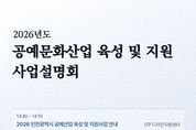 한방통신사 신유철기자 기자 | 인천테크노파크(인천TP)는 오는 13일 인천기업경영지원센터(송도 미추홀타워 3층)에서 ‘2026년도 인천광역시 공예문화산업 육성 및 지원사업 설명회’를 개최한다고 밝혔다. 이번 설명회는 인천광역시가 주최하고 인천TP가 주관한다. 지역 공예기업 및 공예인 등을 대상으로 2026년도 공예산업 지원사업의 추진 방향과 세부 내용을 공유하기 위해 마련됐다. 설명회에서는 인천광역시 공예산업 육성 및 지원사업과 한국공예·디자인문화진흥원의 정부 공예지원사업을 연계해 소개하고 질의응답을 진행한다. 지자체와 중앙정부 지원사업을 한자리에서 종합적으로 이해할 수 있도록 각 기관 관계자가 참여해 사업을 안내할 예정이다. 행사는 3월 13일 오후 1시 30분부터 3시까지 인천기업경영지원센터 비즈니스 라운지에서 진행되며, 참가 신청은 포스터에 있는 QR코드를 통해 할 수 있다. 자세한 사항은 인천TP 디자인지원센터 담당자로 문의하면 된다. 인천TP는 이번 설명회를 통해 2026년도 공예산업 지원사업 참여를 확대하고, 지역 공예인의 네트워크 형성과 사업 이해도를 높일 계획