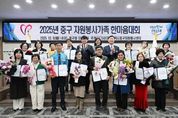 한방통신사 신태공 기자 | 대전 중구는 8일 중구청 대회의실에서 중구 자원봉사센터(센터장 김진화) 주관으로 ‘2025년 자원봉사 가족 한마음대회’를 개최했다고 밝혔다. 이날 행사는 중구 자원봉사협의회 윤덕순 회장을 비롯한 자원봉사자 300여 명이 참석한 가운데, 한 해 동안 펼쳐진 자원봉사활동을 담은 영상을 시청하고 지역사회에 헌신한 우수 자원봉사자와 우수 봉사단체에 표창을 수여하는 등 참석자들의 큰 박수와 축하 속에서 진행됐다. 취약계층 밑반찬 나눔, 어르신 안부 살피기, 무료 세탁 봉사 등 지역 어려운 이웃을 위해 노력한 자원봉사자 25명은 중구청장 표창을, 22명은 중구의회 의장 표창을 수상했다. 단체 표창은 은행선화동 자원봉사협의회를 포함한 14개 자원봉사팀이 수상했다. 김진화 센터장은“오늘 한마음대회가 자원봉사자들의 노고를 격려하고 단합하는 시간이 됐기를 바라며, 자원봉사자가 안전하고 즐겁게 활동할 수 있는 환경 조성을 위해 최선을 다하겠다.”라고 말했다. 중구 관계자는“이웃에 대한 나눔과 배려의 정신으로 헌신적인 봉사활동을 펼쳐주신 회원들께 감사드리며, 앞으로도 구민이 함께 만들어가는 자
