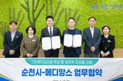 한방통신사 신다은기자 기자 | 순천시가 글로벌 토탈 라이프케어 전문기업 ‘메디앙스(주)’와 손잡고 대한민국을 대표하는 그린바이오 산업 생태계 조성에 본격적으로 나선다. 순천시는 10일 순천시청에서 노관규 순천시장과 메디앙스 박수찬 대표이사 등 관계자들이 참석한 가운데 ‘그린바이오 산업 육성 및 생태계 조성을 위한 업무협약’을 체결했다고 밝혔다. 이번 협약은 순천시의 생태․정원 자원과 메디앙스의 고도화된 생산‧연구 역량을 결합해, 지역과 기업이 동반 성장하는 지속가능한 산업 모델 구축을 위해 마련됐다. 보령그룹에서 분리된 메디앙스는 비앤비(B·B), 닥터아토, 유피스 등 천연, 비자극 대표 브랜드를 보유한 기업으로 2025년 무역의 날 ‘수출의 탑’을 수상하는 등 독자적인 글로벌 브랜드로 성장하고 있다. 특히 자연유래성분 제품으로 중국 광군제 유아 세제부문 11년 연속 판매 1위를 기록하는 등 글로벌 시장에서의 수요 폭발로 매출 확대가 이어지고 있다. 이에 급증하는 수출 물량에 대응하고 안정적인 생산 기반 확보를 위해 독보적인 친환경 생태가치와 인프라를 지닌 순천 그린바이오산업 육성지구에