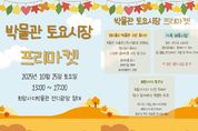 한방통신사 신유철기자 기자 | 양주시립회암사지박물관이 오는 25일 오후 1시부터 5시까지 가을을 맞아 “박물관 토요시장” 프리마켓을 운영한다. “박물관 토요시장”은 2017년부터 꾸준히 운영된 시민 참여형 프리마켓으로 양주 회암사지와 박물관의 다양한 모습을 시민들과 공유하고 있다. 이번 프리마켓은 박물관에서 지원·운영하는 ▲‘엄마들의 박물관 규방 동아리’존, ▲북크닉 존, ▲아트북 만들기, ▲삐에로 풍선아트, ▲사진찍기 이벤트, ▲ 펫티켓 캠페인과 강연까지 보다 풍성한 즐길거리를 선보일 예정이다. 또한 시민참여 ‘가족 벼룩시장’ 존이 운영되어 다양한 볼거리와 체험 거리를 제공할 예정이며 전화 신청을 통해 선착순 30팀을 모집한다. 시 관계자는 "주말 저녁 가족과 함께 박물관 토요시장을 즐기며 회암사지의 아름다운 경치와 다양한 문화 체험으로 뜻깊은 시간을 보내시길 바란다"고 전했다. [뉴스출처 : 경기도 양주시]