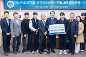 한방통신사 신유철기자 기자 | 경상국립대학교 재경총동문회 임원 5명이 12월 17일 오후에 모교를 찾아왔다. 재경총동문회 김원 회장, 김동재 수석부회장, 김재경 등산회장, 서성옥 의전국장, 배동렬 사무국장이다. 이들은 경상국립대학교 권진회 총장, 오재신 국제처장, 하재필 학생처장, 염준호 학생부처장 등 대학본부 주요 관계자와 총학생회 박한세 회장, 안태용 부회장, 총대의원회 김용관 의장, 총동아리연합회 여준모 회장과 마주앉았다. 김원 회장은 “지난해부터 재경총동문회 차원에서 적극적으로 후원하는 ‘천원의 아침밥’ 사업이 올해 잘 진행됐는지, 내년에는 어떻게 할 것인지, 동문회에서 무엇을 어떻게 도우면 되는지” 물었다. 경상국립대학교 재경총동문회 간부들은 매월 순번을 정해 놓고 50만 원씩 모교의 ‘천원의 아침밥’ 사업을 후원하고 있다. 이렇게 이어지는 기부금의 총 누적액은 1285만 원이다. 재경총동문회의 후배사랑 급식후원은 생각보다 훨씬 규모가 크다. 물론 총동문회도 함께한다. ▲재경총동문회 1285만 원 ▲총동문회 500만 원 ▲한국농어촌공사 재직