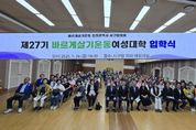 한방통신사 신유철기자 기자 | 바르게살기운동 인천 서구협의회는 9월 27일 서구청 대회의실에서 ‘제27기 바르게살기운동 서구여성대학 입학식’을 개최했다. 이날 행사에는 송승환 서구의회 의장을 비롯해 바르게살기 운동 군‧구협의회 회장, 서구협의회 임원 및 회원, 그리고 입학생 180여 명이 참석해 성황을 이뤘다. 제27기 여성대학은 인천 서구 관내 주부들을 대상으로 11월 20일 수료식까지 매주 목요일 가좌동 나은병원에서 진행되며, 여성들의 역량 강화와 지역사회 발전을 위한 배움의 장으로 운영된다. 여성대학은 바르게살기운동의 3대 이념인 ‘진실, 질서, 화합’을 교육이념으로 삼고, 다양한 강의와 프로그램을 통해 학생들이 자신감을 키우고, 서로를 격려하며 새로운 시각으로 세상을 바라볼 수 있도록 돕는다. 바르게살기운동 인천서구협의회는 “지역사회에 관심을 가지고 봉사에도 적극 참여하며, 행복한 가정과 더불어 잘사는 서구 발전에도 큰 힘이 되어 주시기를 기대한다”라며 “입학생 모두가 건강하고 즐겁게 배우는 시간이 되기를 바란다”라고 전했다. [뉴스출처 : 인천시서구]