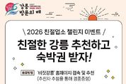 한방통신사 양호선기자 기자 | 강릉시는 2026-2027 강릉 방문의 해를 맞아 국제관광도시 시민실천운동 추진위원회와 함께 오는 3월 1일부터 ‘2026 관광객 추천 친절업소 챌린지’를 본격적으로 시작한다고 밝혔다. 이번 챌린지는 관광객의 생생한 목소리를 통해 신뢰도 높은 친절 업소를 발굴하고, 지역 외식·숙박 업소의 자발적인 친절 문화를 확산시키기 위해 기획됐다. 시는 이를 통해 강릉의 관광 브랜드 이미지를 제고하고 글로벌 수준의 서비스 문화를 정착시켜 ‘국제관광도시’로의 도약을 가속화할 방침이다. 참여 대상은 강릉을 방문하는 모든 관광객으로, 강릉 여행 중 감동적인 서비스를 경험했거나 추천하고 싶은 업소가 있다면 강릉시 관광 홈페이지 ‘비짓강릉’ 내 전용 게시판을 통해 간편하게 추천할 수 있다. 시는 추천된 업소 중 분기별로 외식업소 2개소, 숙박업소 1개소 등 연간 총 12개소를 선정할 예정이다. 선정은 ▲데이터 무결성 검증 ▲현장 실사(친절·정직·청결 지표 점검) ▲국제관광도시 시민실천운동 추진위원회 심의 등 엄격한 3단계 검증 과정을 거쳐 공정하게 이루어진다. 또