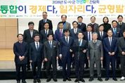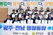 한방통신사 신다은기자 기자 | 전라남도는 16일 전남도청 왕인실에서 ‘2026년 도-시군 상생협력 간담회’를 열어 지역 대도약을 위한 광주·전남 행정통합 추진에 도와 22개 시군이 공동 보조를 맞추기로 했다. 간담회는 김영록 전남도지사와 22개 시장·군수 등 관계자 100여 명이 참석한 가운데, 광주·전남 행정통합 추진계획과 전남도 재생에너지 추진전략을 중심으로 발표와 토론이 진행됐다. 이들은 광주·전남 행정통합을 통해 대한민국 제1호 통합 광역지방정부 출범을 목표로, 도와 시군이 상생 협력 의지를 재확인하고, 전남의 미래 성장 전략을 논의했다. 특히 특별법 제정안을 중심으로 행정통합 추진 경과와 향후 일정을 공유하고, 전남을 대한민국 첨단산업을 이끄는 ‘재생에너지의 심장’으로 육성하기 위한 시군의 협력 방향과 역할 분담에 공감대를 형성했다. 김영록 지사와 전남시장군수협의회는 광주·전남 행정통합 환영 성명서를 발표하고, 초광역 경제 중심지 도약을 위한 행정 통합에 적극 협력할 뜻을 밝혔다. 또한 22개 시군의 고유한 특성과 자율성이 존중되는 균형발전형 통합과 민주적 합의, 도민 공감대