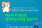 한방통신사 신다은기자 기자 | 여수시는 시민 삶에 필요한 맞춤형 평생교육 프로그램을 발굴하기 위해 ‘2026년 평생학습 특성화 강좌 지원사업’을 공모한다고 밝혔다. 이번 사업은 ‘2026년 명품 평생학습도시’ 조성을 목표로 지역 특성과 시대적 교육 수요를 반영한 평생교육 프로그램을 발굴·지원하기 위해 추진된다. 공모 접수는 3월 23일부터 25일까지 3일간 진행되며 여수시 소재 평생교육시설, 법인, 단체를 대상으로 한다. 심사를 통해 총 7개 강좌를 선정하고, 선정된 강좌에는 강사비 최대 230만 원 이내에서 지원할 예정이다. 공모 분야는 ▲지역특화 교육 ▲ESG 시민교육 ▲디지털 활용 교육 ▲직업능력개발 ▲섬박람회 관련 교육 등이다. 여수시는 이번 사업을 통해 지역 특성을 반영한 평생교육 콘텐츠를 확대하고 시민들의 학습 참여 기회를 넓혀 지역사회 역량 강화와 평생학습 문화 확산에 기여할 것으로 기대하고 있다. 공모와 관련된 자세한 사항과 신청 서식은 여수시청 누리집 고시·공고란에서 확인할 수 있으며 문의는 여수시 평생학습관으로 하면 된다. 시 관계자는 “지역