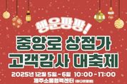 한방통신사 신유철기자 기자 | 제주시는 12월 5일과 6일 오전 10시부터 오후 5시까지 중앙로 상점가 일대에서 ‘행운팡팡! 고객감사 대축제’가 개최된다고 밝혔다. 행사 기간 구매 영수증 경품 추첨 이벤트, 버스킹 공연, 키즈마켓데이 이벤트, 각종 미니게임 등 다채로운 프로그램과 다양한 볼거리, 즐길거리가 마련돼 도민과 관광객이 함께하는 지역 축제가 될 전망이다. 이번 행사는 중소벤처기업부 공모사업으로 선정돼 올해부터 추진 중인 ‘상권활성화사업’의 일환으로, 제주원도심활성화자율상권조합과 함께 원도심 상권인 중앙로 상점가에 활기를 불어넣기 위해 마련됐다. ‘상권활성화사업’은 지역 상권을 자율상권구역으로 지정하면 자율상권조합이 중심이 되어 핵심 콘텐츠와 특화 상품을 개발해 특색있는 상권을 조성하고 운영하는 사업이다. 제주시 칠성로·중앙로·중앙지하상가는 2024년 중소벤처기업부 공모를 통해 자율상권으로 선정됐다. 제주시는 2025년부터 2029년까지 최대 100억 원을 투입해 원도심 지역경제 활성화를 위한 각종 특화 사업과 시설 개선을 추진할 계획이다. 올해는 사업의 기반을 다지는 해로 제주
